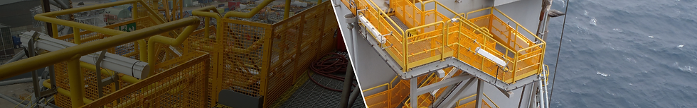 Soluciones enfocadas en seguridad industrial, prevención de caída de objetos (Dropped Object Prevention) y reducción del riesgo de lesiones en pasarelas, plataformas, escaleras y zonas de equipos en movimiento.